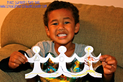 Prince Charming posing with his triangle, circle, and square people.