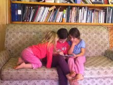 | Kaelynn (8) and Rose (5) work on a creative animated storytelling project together using Toontastic while Sarah (3) watches. |